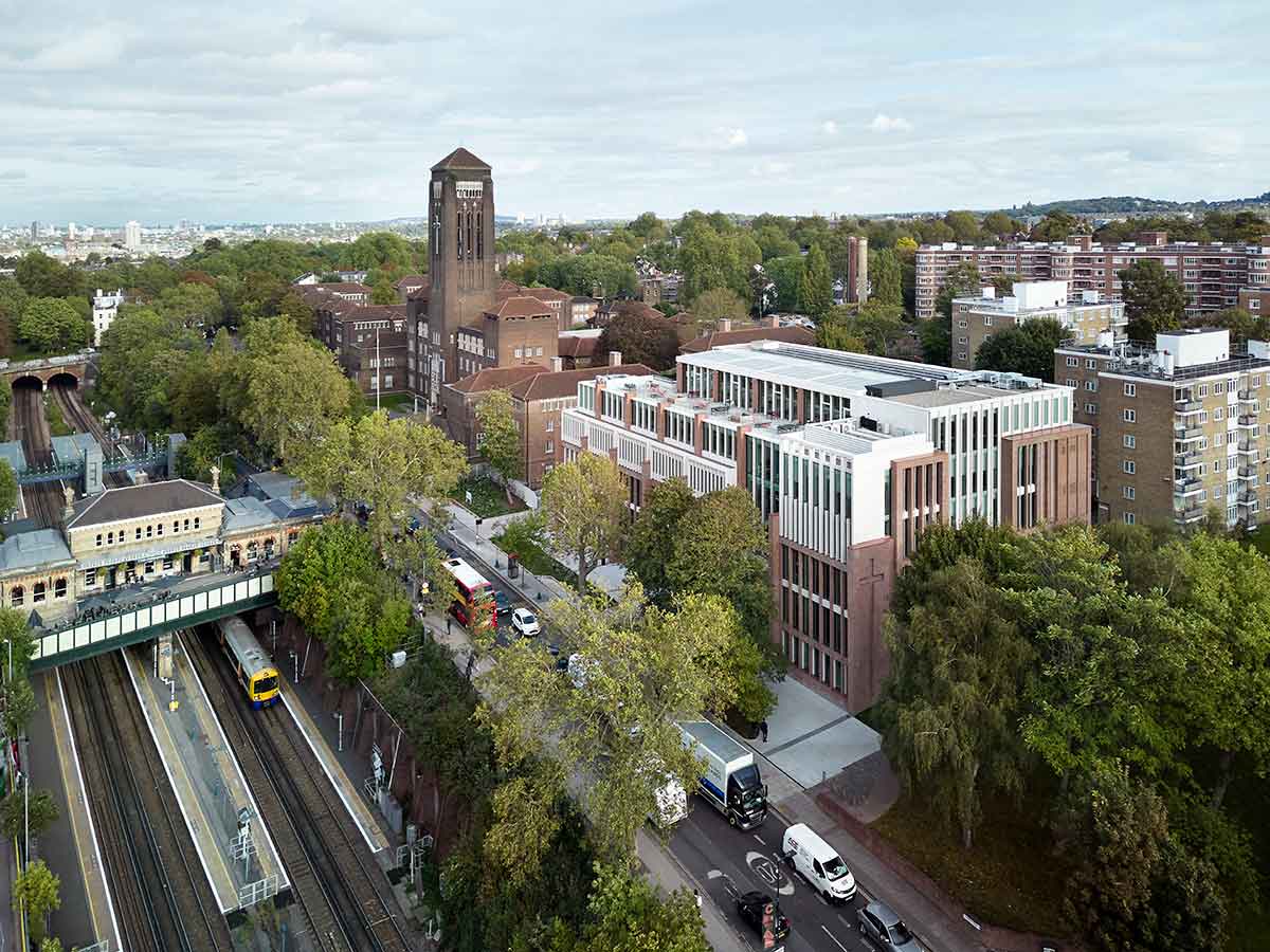 In all, 296 precast panels were used, the largest weighing seven tonnes and measuring 7.7m x 2.7m. The facade brickwork has been combined with creamy coloured glass-reinforced concrete to echo the brick and Portland Stone pallet of the original college. The overall effect is an elegant blend of modern and traditional, with the new HQ respecting the old buildings, while asserting its own identity. William Booth would surely approve.