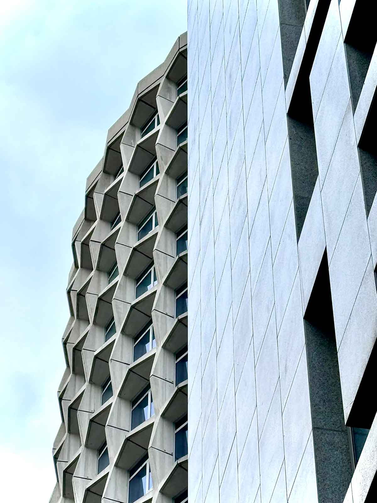 The challenge, Seaforth’s Railston-Brown explains, was understanding not only what the original mix contained and how it ha aged – but also how any new elements would age. “We were trying to design a concrete mix that wasn’t necessarily going to look identical on day one, but would look identical in a year or two, when it had weathered. It was a very long back-and-forth process.” This was all the more important because the new elements would be surrounded on both sides by existing units.