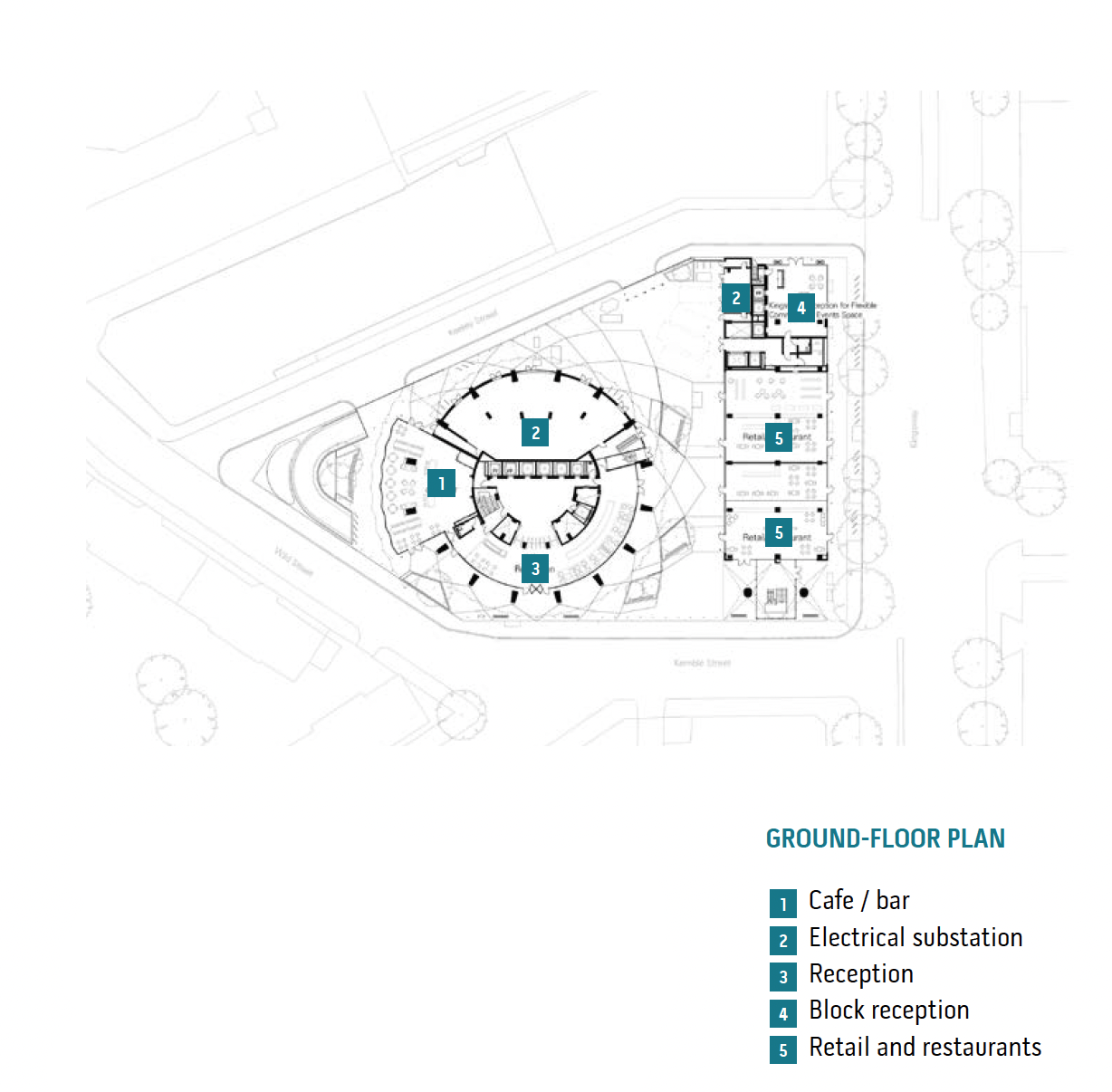 These have been converted into the Filling Station restaurant and a cycle centre with 600 spaces and 62 showers, with one of the three parking ramps retained as an entrance for cyclists. An unusual added advantage of the original tower is that it contains a huge electrical substation at ground and two basement levels, covering almost a third of the floorplate. “It meant there was a huge amount of private realm on the ground floor that was sort of public, but it wasn’t quite clear,” says Gledstone.