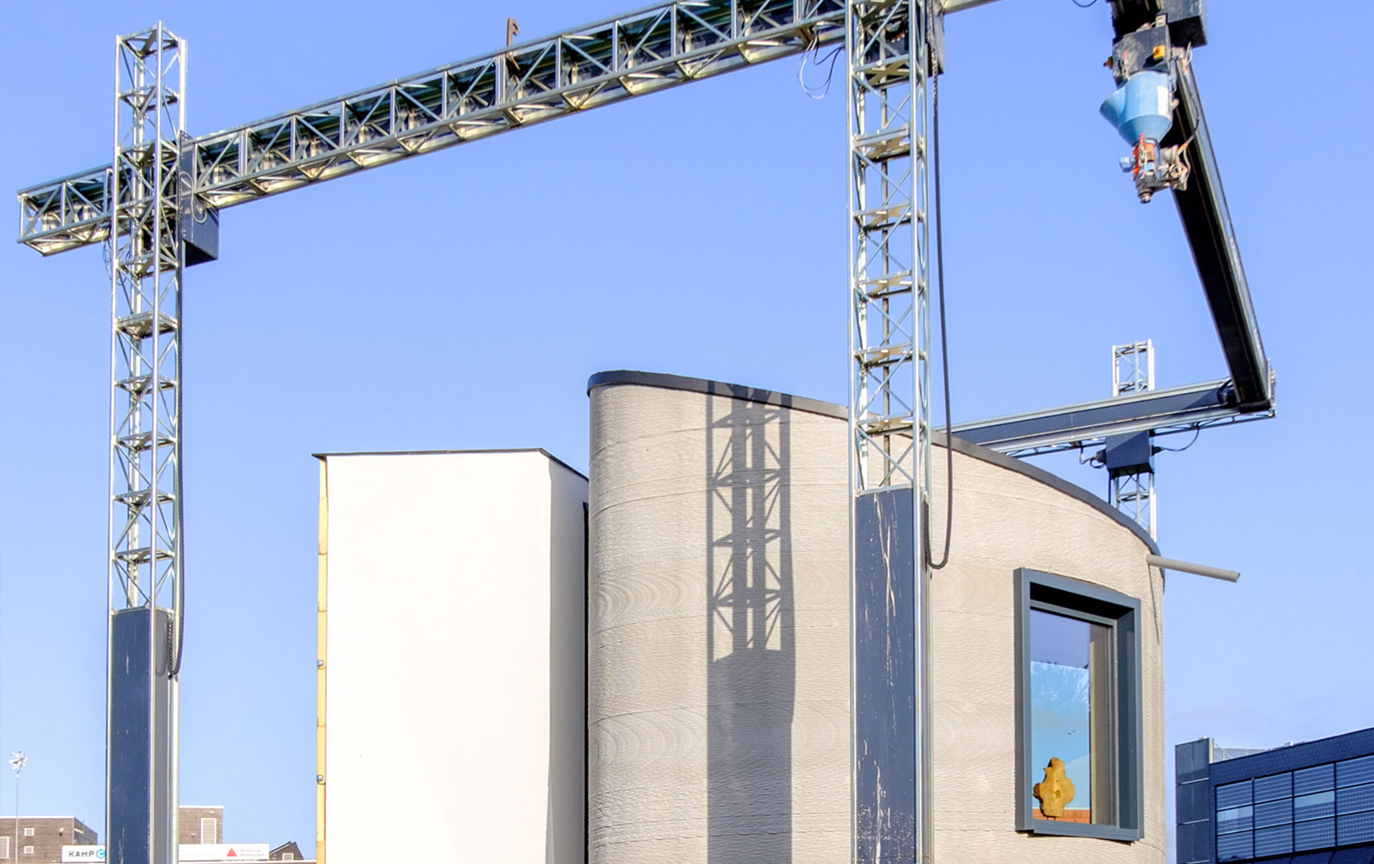 Kamp C constructed the 8m-tall house using Europe’s largest concrete printer – a fixed gantry system device made by COBOD. “You erect it in just one day, like a crane,” says Aerts. “Working with printed concrete is a completely different way of building. There’s been a lot to learn, but it’s exciting work.”