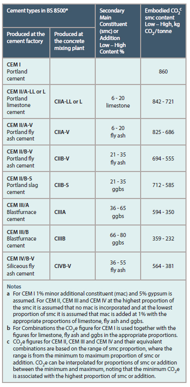Embodied CO2 of typical UK Cements