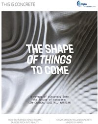 Concrete provides non-combustible structures for our homes, schools, hospitals and offices, and the thermal mass to cool them in warmer summers without energy-intensive cooling systems. This publication looks at the 'shape of things to come' with concrete as innovators are reformulating cement to be less energy-intensive or replacing it completely, devising alternatives to fine aggregate such as waste plastic and inventing new types of reinforcement that can bend, be 3D-printed in fibre form or even transmit light.