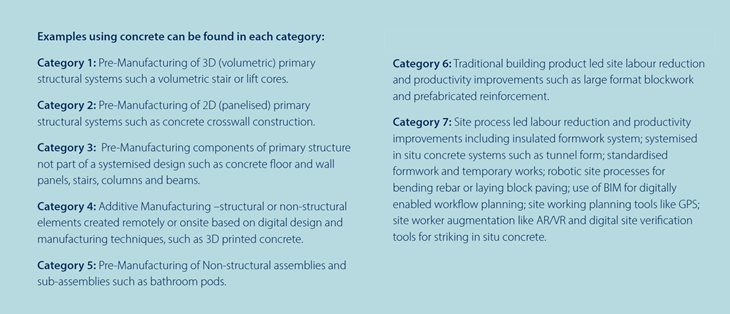 The concrete industry embraces innovation and modern methods of construction (MMC) by offering concrete solutions which can be used to reduce construction time and promote sustainable development, as well as offering cost savings. More detail on a selection of systems available using concrete are provided below. See also Offsite Concrete Construction publication.