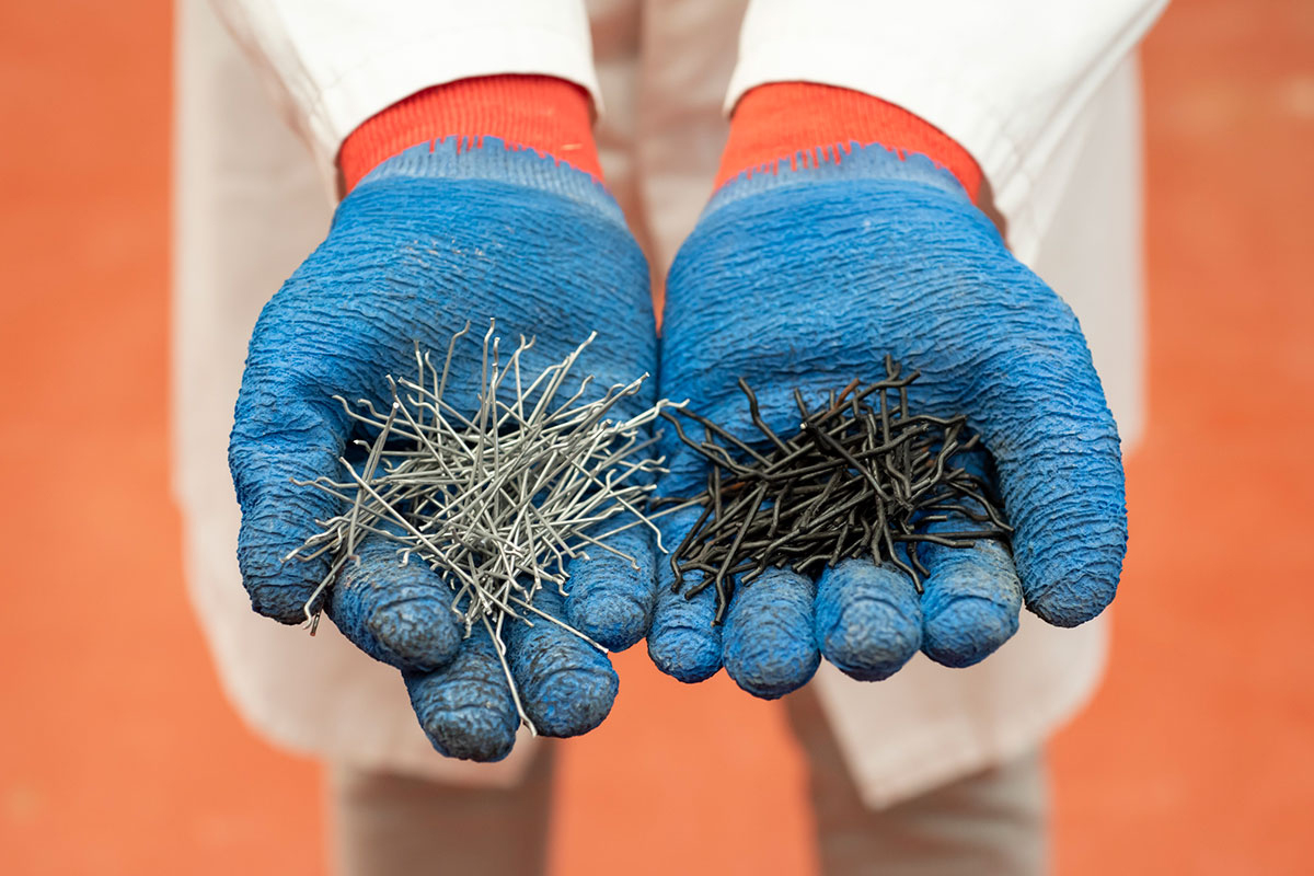 Another issue is the shape of the individual wires or fibres. Those currently used in ISF composite concrete are specially manufactured with short bends, or ankles, at the end of each wire to increase the grip of the wires within the set concrete. “It’s not practical to add these features to recycled wire,” he explains. “So we had to check what effect using simple straight wires would have.”