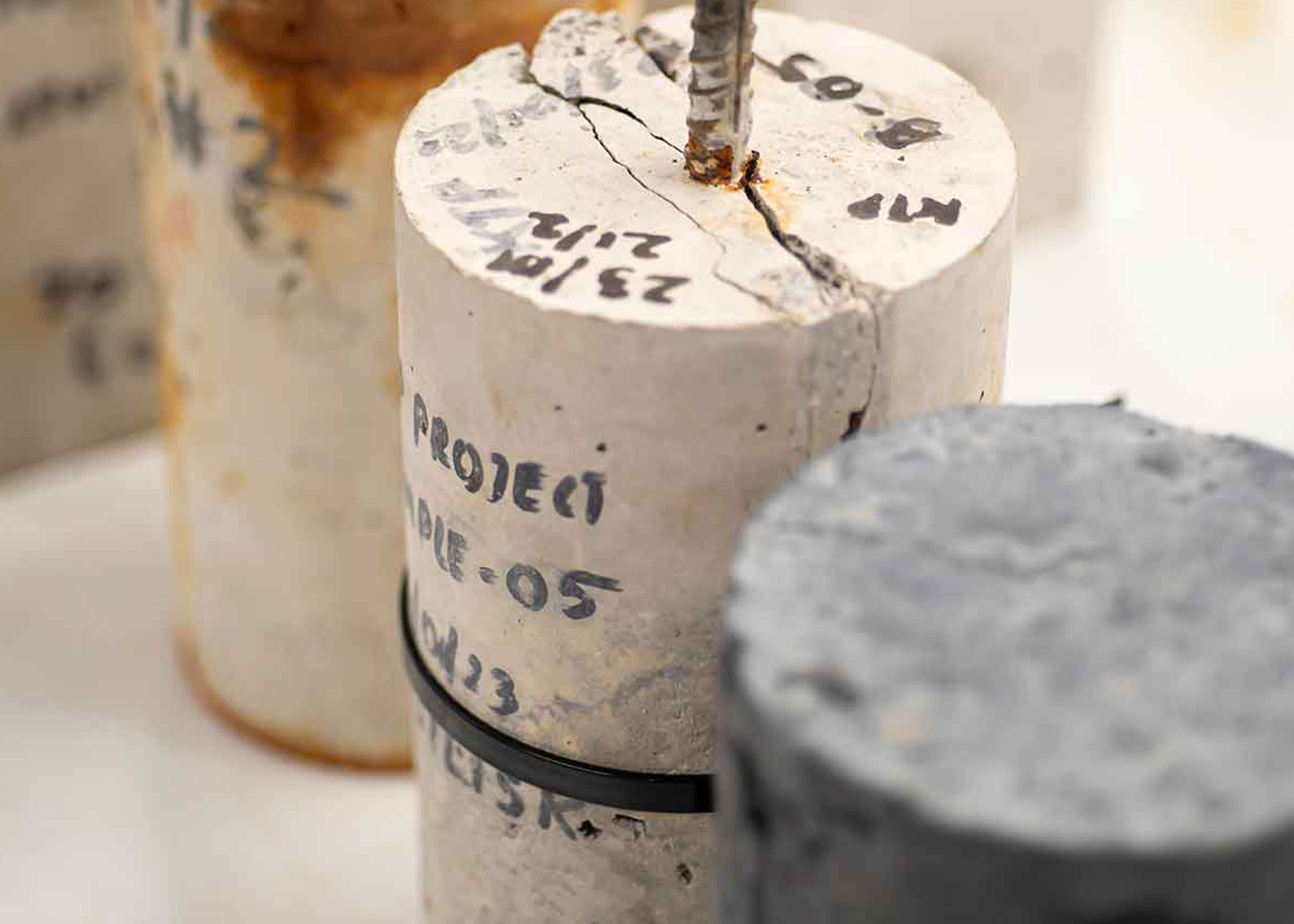 The close study of the corrosion resistance of healed cracks is a good example of UEL’s real-world focus: “Most testing of MICP to date has been carried out on unreinforced concrete” says Abbas. “Sealing cracks with MICP should protect rebar – but does it? To find out if it really works we have cylinders with a length of rebar down the middle, and we pass a current through that to accelerate any corrosion that might occur.”